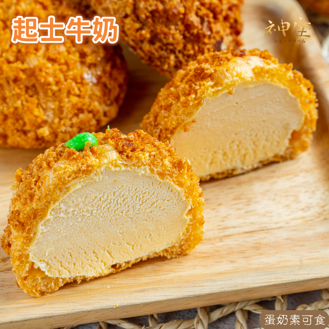 現烤酥口感:烤箱先200度預熱5分鐘,再自冷凍取出泡芙,進烤箱回烤3分鐘,即可食用。