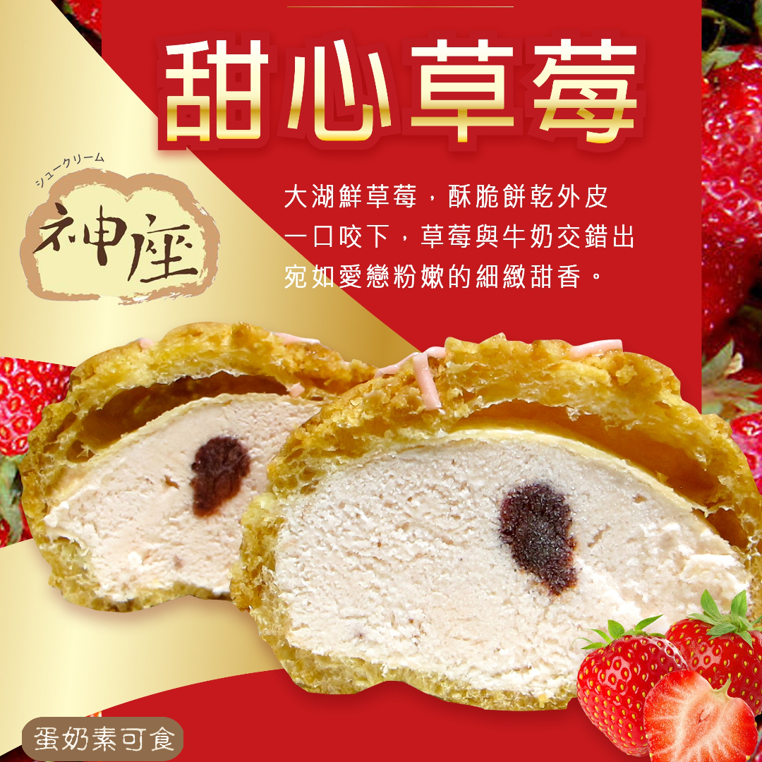 【甜心草莓綜合泡芙禮盒】12入 / 盒|甜心草莓 / 原味牛奶 / 起士牛奶 / 果香藍莓