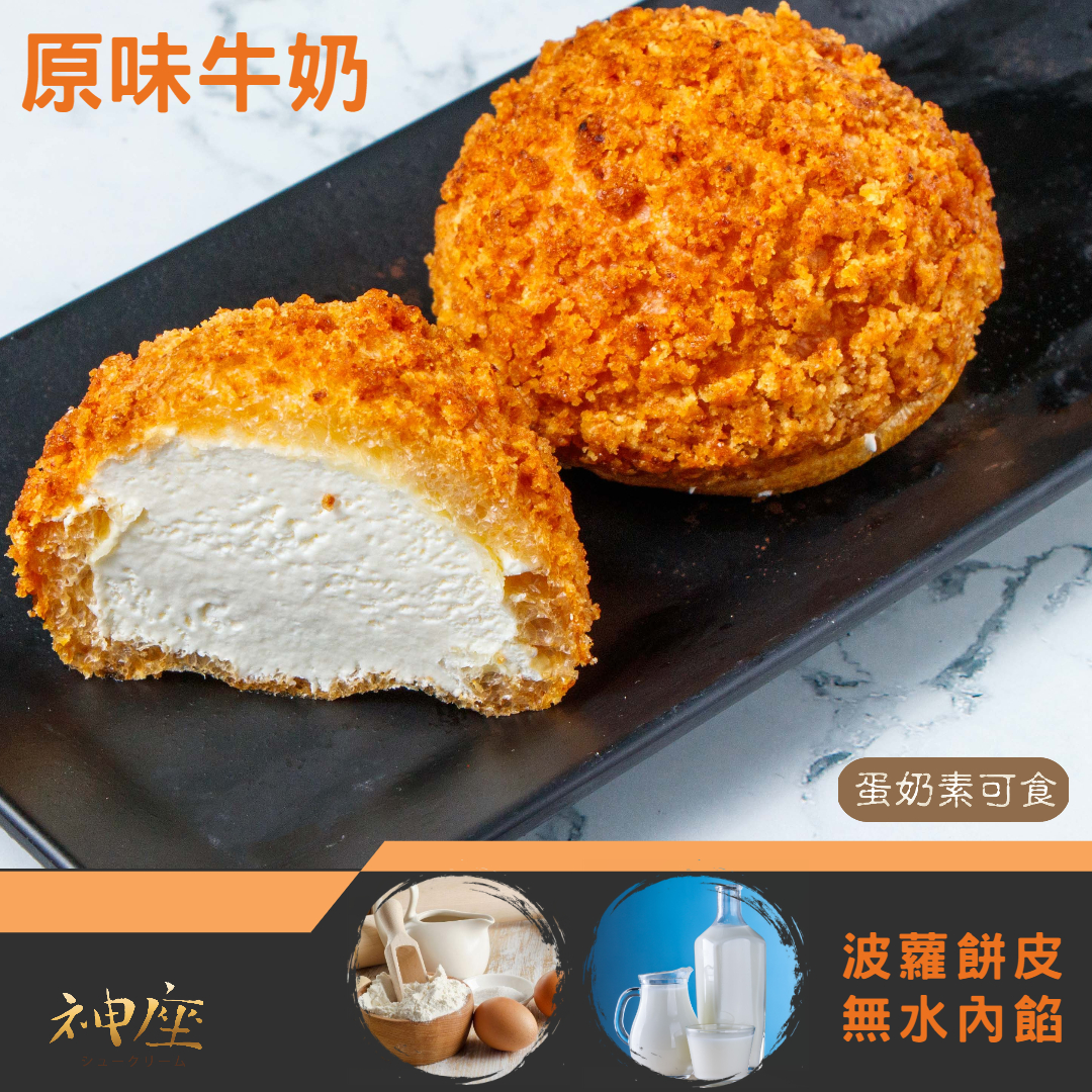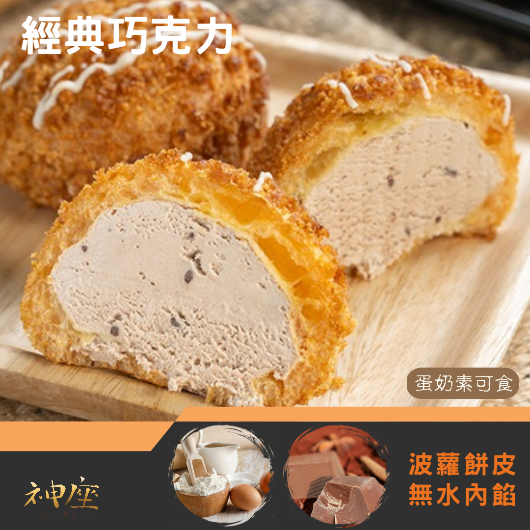 現烤酥口感:烤箱先200度預熱5分鐘,再自冷凍取出泡芙,進烤箱回烤3分鐘,即可食用。